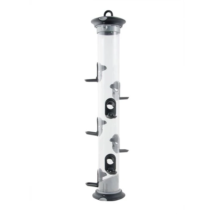 This seed feeder helps to make bird feeding even easier. The base, lid and ports are easily removed with our unique ‘Click & Go’ release system which allows you to dismantle the feeder in just 10 seconds! Straight forward to reassemble and fill your feeder without the use of tools. The unique ventilation system in the lid prevents condensation in the tube, helping to keep food fresh for longer.