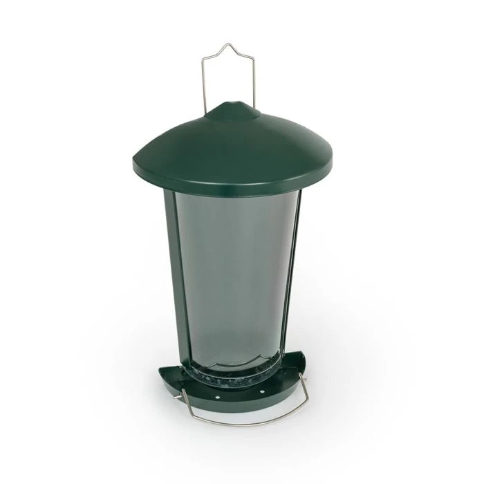 The metal feeder can be used to feed Seed and Mealworms, it is easy to fill by simply opening the lid. The perch allows several birds to feed at once whilst being able to keep a clear view of the surrounding area so they feel safe from predators.
