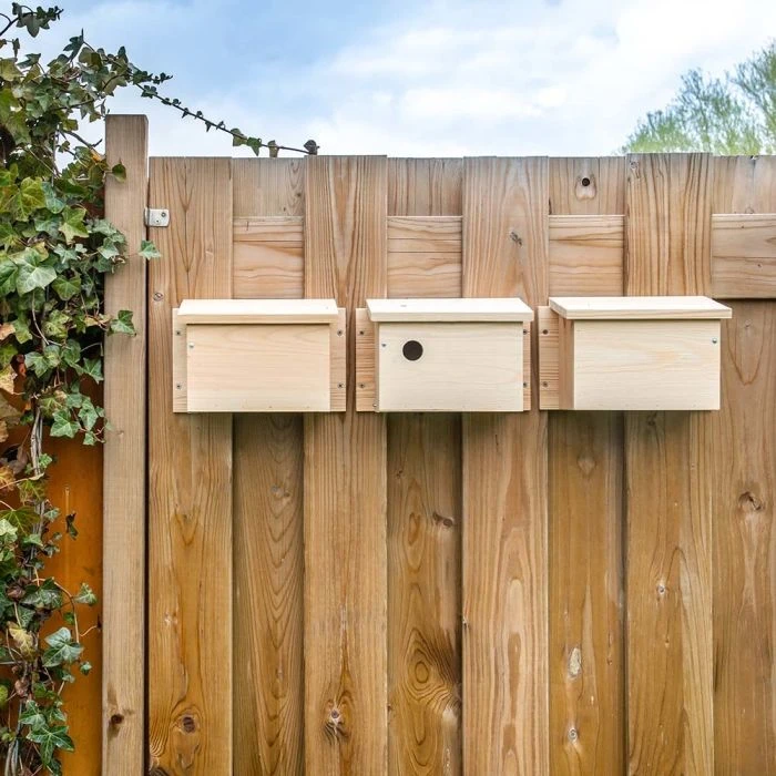 The nest boxes can hang under eaves, gutters, or on walls out of direct sunlight and prevailing wind. They must be placed at least 3 metres from the ground, for safety. No nesting material is required, and all screws and fixings are included.