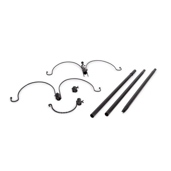 The Tambora bird feeding station is sold as a complete set to include 2 x metal bird seed feeders, 1 x metal peanut feeder, 1 x metal peanut cake square feeder, 1 x  micro-mesh bird food tray and 1 x bird bath with support ring and an extra hanging arm for providing additional fat, such as a coconut, or an additional feeder.Â