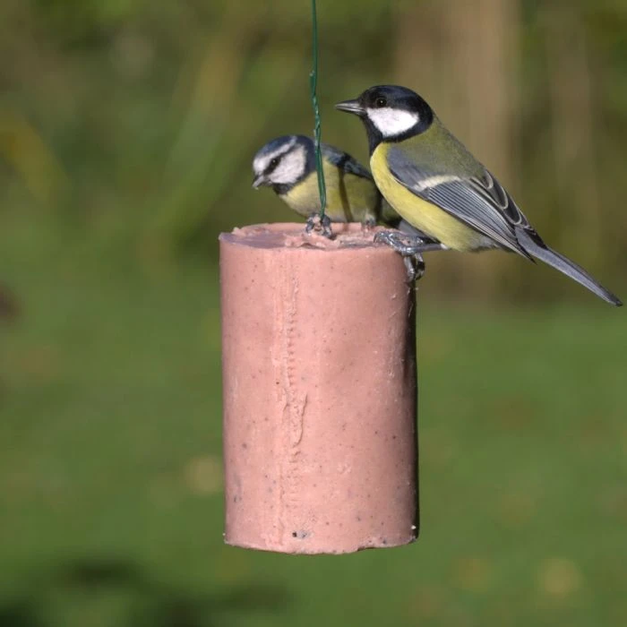 These cakes can be fed either from a hanging or pole-mounted feeder, or chopped up on a table. They can also be chopped into small pieces (1cm cubes) and scattered around the edge of your feeding area to give smaller and more timid species (such as Dunnocks, Wrens and Blackbirds) a chance to enjoy them.